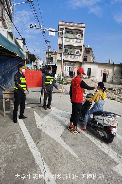 16級電氣一班彭智華,主動請纓加入了當(dāng)?shù)亟还懿块T的防疫工作,協(xié)助交管部門做好稽查工作和日常消毒、閑散人員出行勸導(dǎo)工作。自大年初一開始,彭智華便每天奔走在各個鄉(xiāng)村,給村民普及新型冠狀病毒相關(guān)防控知識,勸阻村民盡量減少外出;定時走訪村民家中記錄體溫;分發(fā)醫(yī)用口罩及消毒液等物品……彭智華用自己的實(shí)際行動支援這場沒有硝煙的戰(zhàn)“疫”。“疫情當(dāng)前,全國各地的醫(yī)護(hù)人員都奮戰(zhàn)在一線,他們的負(fù)重前行只為求得全國人民的歲月靜好!我作為一名大學(xué)生,科學(xué)防護(hù)的前提下,也可以勇往直前,為守護(hù)好自己的家園貢獻(xiàn)綿薄之力。”。