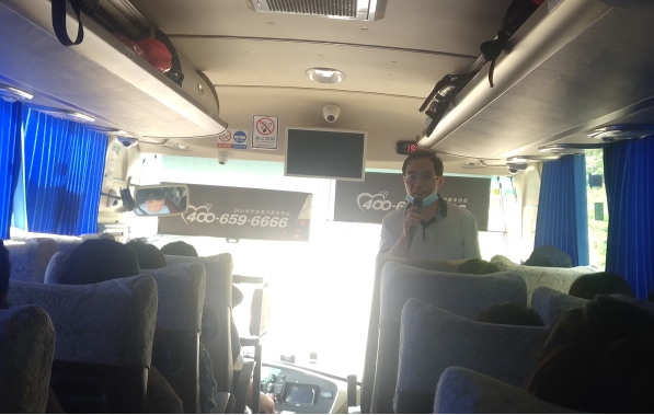 圖 周光明在返程車上給全體黨員上微黨課