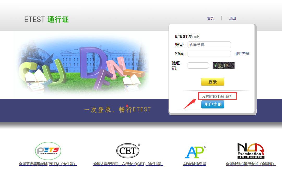 使用系統(tǒng)網(wǎng)上報名需要ETEST通行證賬號。已有通行證賬號(英語四六級考試、PETS考試、AP考試已注冊通行證賬號)的考生可直接登錄報名網(wǎng)站報名;無通行證賬號的考生登錄通行證管理網(wǎng)站注冊,之后再登錄報名網(wǎng)站報名。