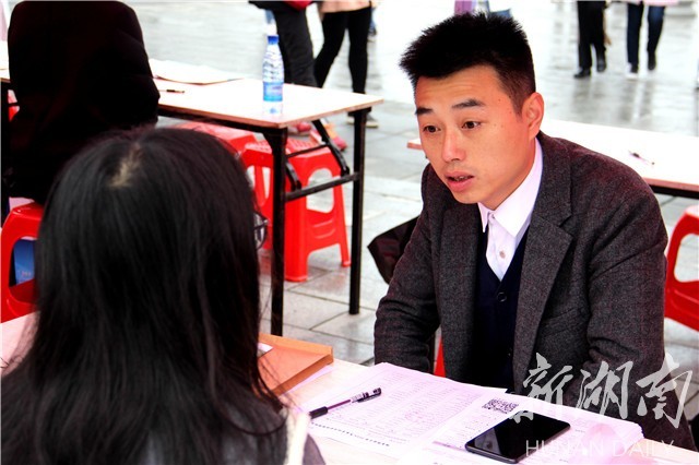 湖南理工學院英語師范專業(yè)的2017屆畢業(yè)生彭鳴艷,從手機微信端推送得知此次招聘會的信息后,提前一天從懷化來到該校做準備。相較于初出茅廬的應(yīng)屆生來說,彭鳴艷已經(jīng)有了一年的工作履歷,對于下午即將到來的面試,彭鳴艷不無自信,“專業(yè)技能證書英語專業(yè)八級已經(jīng)過了,這一年來為了更好地迎接工作的挑戰(zhàn),閱讀了與心理咨詢相關(guān)的書籍,祝福自己可以順利通過HR的面試。”彭鳴艷笑到。
