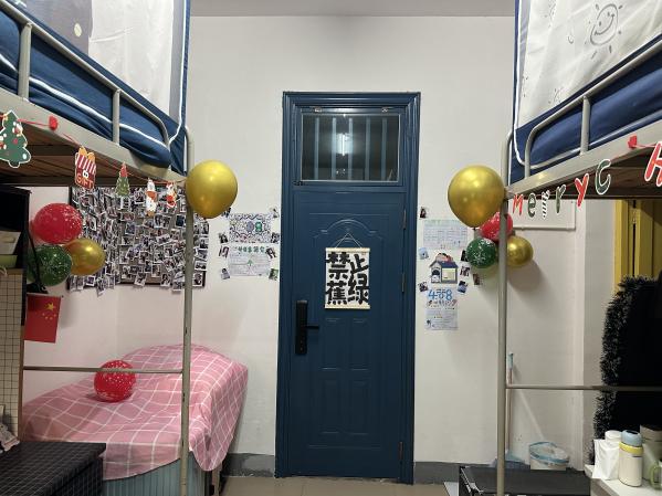 本屆宿舍文化節(jié)系列活動(dòng)巧妙地融合了線上與線下兩種形式,精心策劃了“筑夢(mèng)空間”宿舍改造大賽和“光影創(chuàng)意”宿舍攝影比賽兩大板塊活動(dòng),吸引同學(xué)們熱情參與。在“筑夢(mèng)空間”宿舍改造活動(dòng)中,同學(xué)們積極響應(yīng)“筑夢(mèng)空間,創(chuàng)意無(wú)限”的主題,充分發(fā)揮自己的創(chuàng)意和才華,將宿舍打造成為既溫馨又充滿個(gè)性的小天地。11月25日,我院輔導(dǎo)員鐘純、鄒世斌、譚步康、羅安妮老師下寢對(duì)此次的宿舍美化改造進(jìn)行評(píng)審打分,分別從主題表達(dá)、宿舍衛(wèi)生、裝飾創(chuàng)意等多個(gè)維度考核,深切感受到了學(xué)生們獨(dú)具匠心的宿舍設(shè)計(jì)和和諧融洽的宿舍氛圍。有些宿舍以春節(jié)作為主題,門(mén)上貼著喜慶的對(duì)聯(lián),窗戶上掛著紅色的窗花,營(yíng)造出一種濃厚的節(jié)日氛圍;還有一些宿舍選擇主打溫馨風(fēng)格,這些宿舍的裝飾風(fēng)格簡(jiǎn)約而不失雅致,色調(diào)柔和,給人一種寧?kù)o和放松的感覺(jué)。