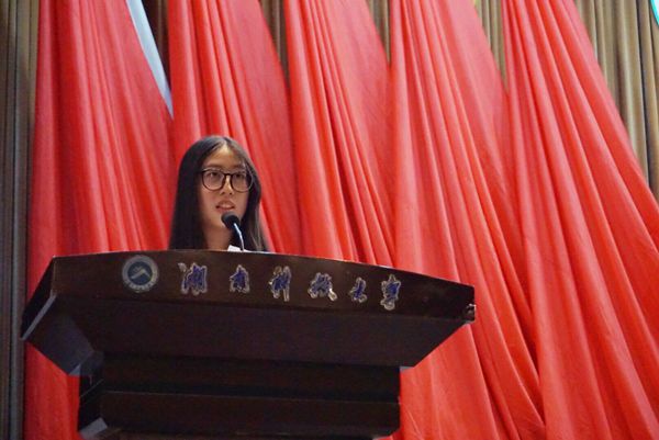 緊接著余蓉暉在典禮上為新生解讀了學院學籍管理規(guī)定,她表示學生的本分就是刻苦學習,大學是青年學生學習的重要階段,苦命的高中輕松的大學已經不復存在。同時她對新生提出了“三多一少”的要求,即多去圖書館、多去教室、多去運動場、少玩手機。并告誡全體新生:任何美好的理想和追求都不是唾手可得的,希望大家在以后的學習和生活中多一份持之以恒的勤奮,少一些虛度年華的安逸;從瀟湘啟航,努力拼搏,做一名遵守制度的優(yōu)秀大學生。