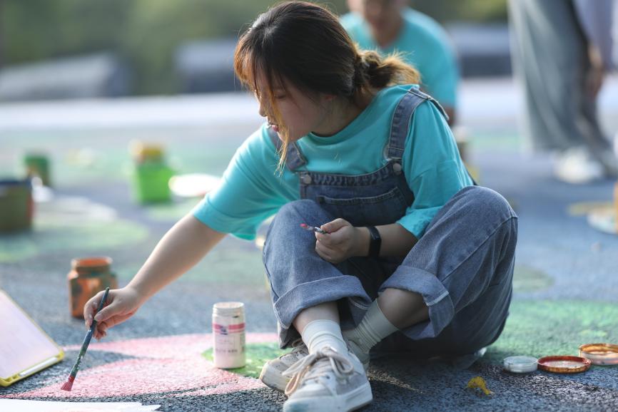 圖 實(shí)踐團(tuán)成員正在進(jìn)行創(chuàng)意彩繪