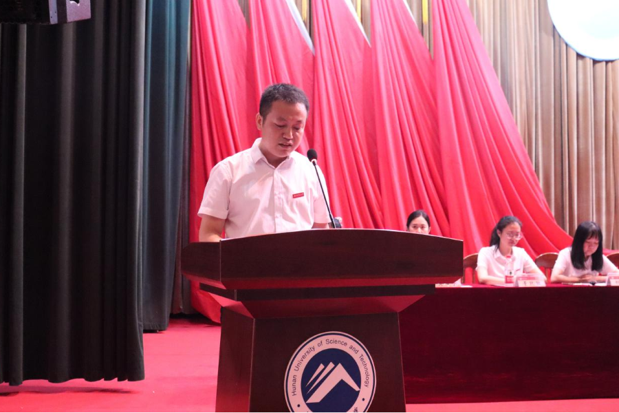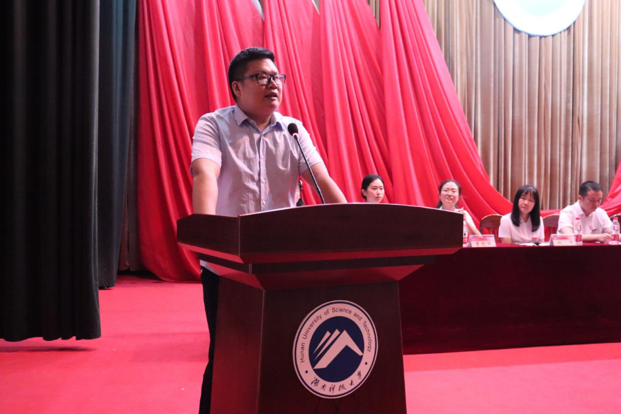 作為專業(yè)教師代表人文系副主任聶志軍表達了他作為一名人文社科教師對“瀟湘”一詞的理解,并以“瀟湘三解”引出“人生三境”。他表示,同學們來到瀟湘學院要體驗人生的三重境界,即一切過往,皆為序曲;立足湖南,著眼全國;不忘初心,腳踏實地。“愿你們在這鮮活而張揚的年紀,豪言不枉此生。”聶志軍滿懷激情地說道。