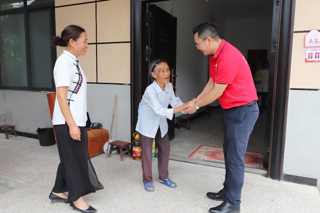 會(huì)后,眾人攜糧油到木腳村當(dāng)?shù)毓鈽s在黨50年的老黨員家中進(jìn)行走訪慰問,表示敬意與感恩。質(zhì)樸村民們用西瓜回應(yīng)實(shí)踐團(tuán)人熱情,雙方促膝相談甚歡。通過與老黨員們的交談,實(shí)踐代表團(tuán)隊(duì)們重溫歷史,領(lǐng)悟黨性。一名黨員就是一面旗幟,本次走訪激發(fā)了實(shí)踐團(tuán)成員擔(dān)當(dāng)時(shí)代重任的使命感、筑牢樹立遠(yuǎn)大理想的堅(jiān)定感,激勵(lì)實(shí)踐團(tuán)隊(duì)成員們努力成長堪當(dāng)民族復(fù)興重任的時(shí)代新人。