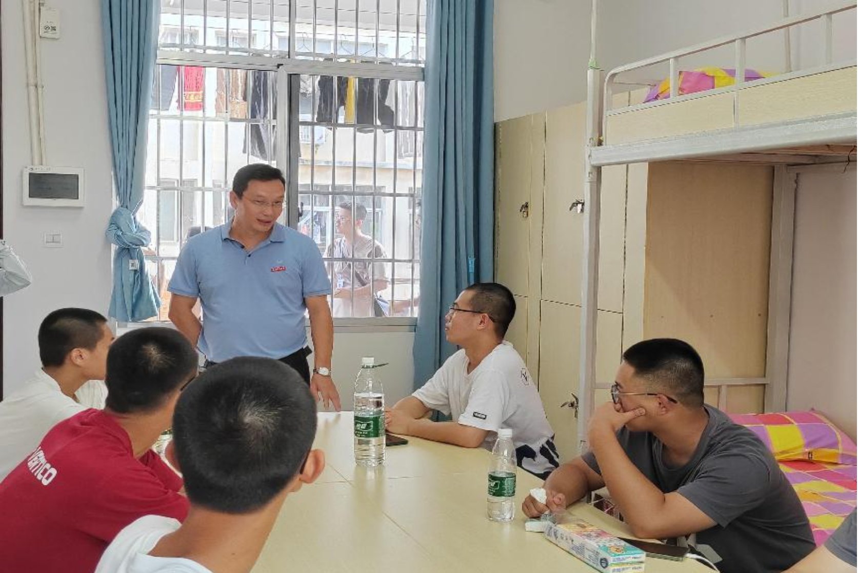 “家鄉(xiāng)是哪里的?”“宿舍條件感覺怎么樣啊?”“今天累了嗎?“廖雙紅的親切問候迅速拉近了與新生們的距離,新生宿舍里歡聲笑語不斷。廖雙紅全面了解新生宿舍環(huán)境以及新生的適應情況,他叮囑新生們要養(yǎng)成運動的好習慣,健康的體魄是取得學業(yè)成就的基礎,同時希望大家加強寢室文化建設,保持干凈整潔的生活環(huán)境,營造良好的學習氛圍,明確大學目標,做好時間規(guī)劃,不虛度四年時光!