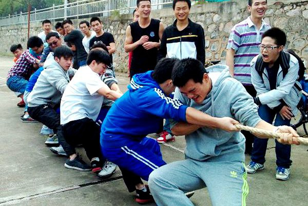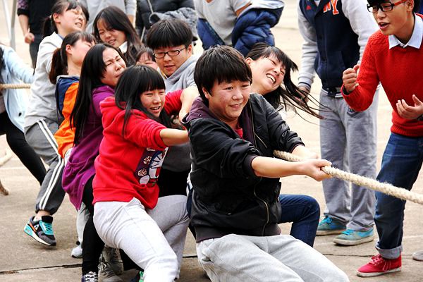 11月21日中午12:30,我院人文社科體育學部于第五教學樓前坪舉行“萬人拔河"比賽初選。本次比賽參與人員為13、14級同學,共33個班級,分為男生組甲組,女生組乙組,其中每班選出10人參賽。