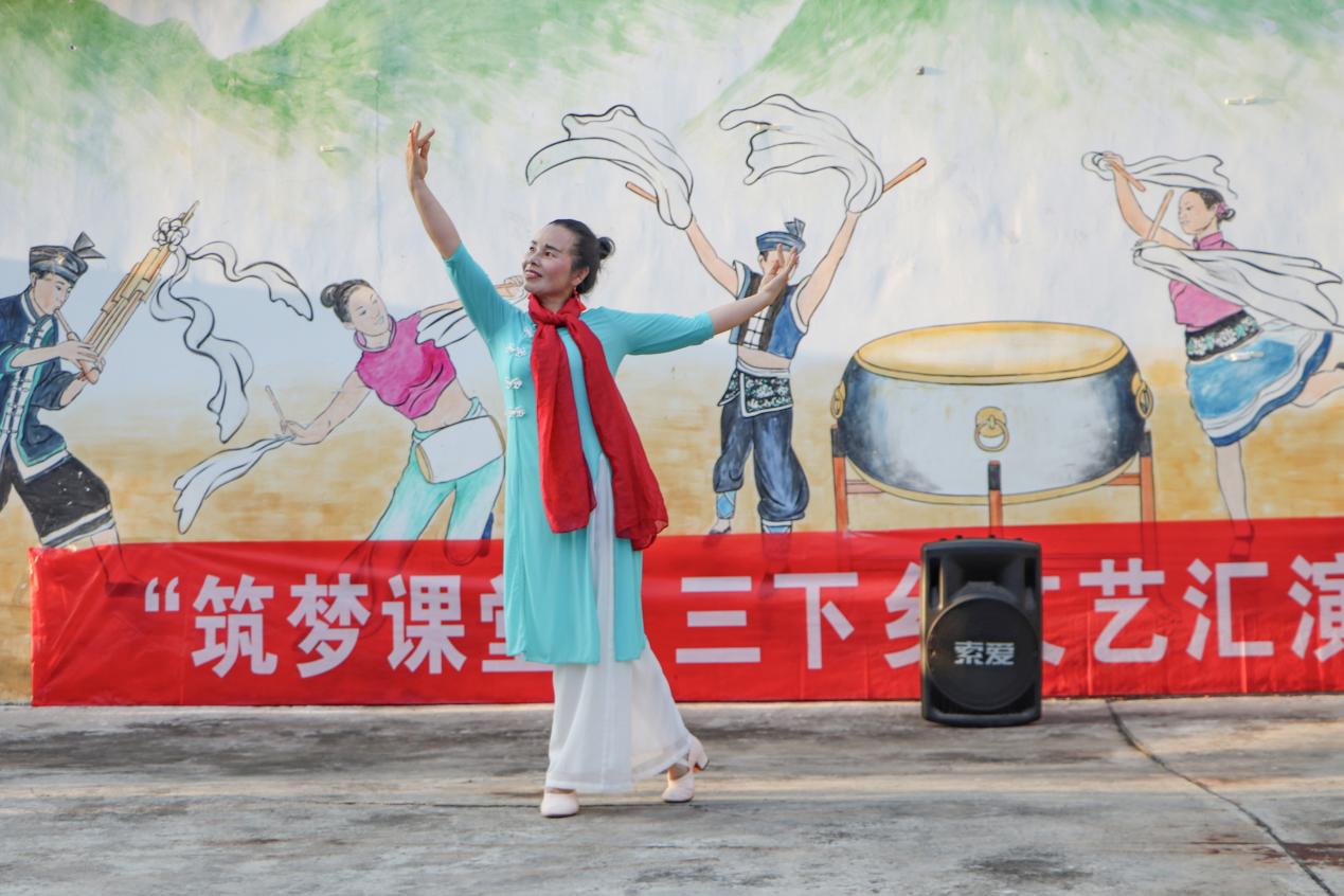 綠樹掩映,唯美木腳,歡歌熱舞,匯演笑語綻芳華,湖南懷化市通道縣木腳村委會小舞臺上縈繞著此起彼伏的歡呼和掌聲。為全面學(xué)習(xí)宣傳貫徹黨的二十大精神,豐富當(dāng)?shù)厝嗣窬裎幕睿︵l(xiāng)村文化振興,7月11日晚,湖南科技大學(xué)瀟湘學(xué)院組織開展“筑夢課堂”文藝匯演暨教學(xué)成果展示。本次活動邀請木腳村湖南省國動辦駐村工作隊及木腳村黨員干部出席活動,湖南科技大學(xué)瀟湘學(xué)院實踐團全體成員與當(dāng)?shù)鼐用駞⒓踊顒印?/p>