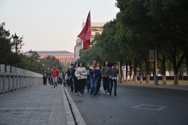 迎著十九大的清風(fēng),心懷著對(duì)黨的敬意,11月5日早上6:30,我院第二期發(fā)展對(duì)象培訓(xùn)的以“學(xué)習(xí)十九大精神,樹立強(qiáng)健體魄新風(fēng)尚”為主題的實(shí)踐活動(dòng)由黨建培訓(xùn)部部長(zhǎng)謝威在南圖前坪主持展開。本次實(shí)踐活動(dòng)的內(nèi)容是晨跑鍛煉,以南圖為起點(diǎn)沿著固定路線環(huán)校晨跑,最終回到南圖。這不僅是大學(xué)生提高自我的一種重要方式,也是在行動(dòng)上進(jìn)一步向黨組織靠攏的的體現(xiàn)。