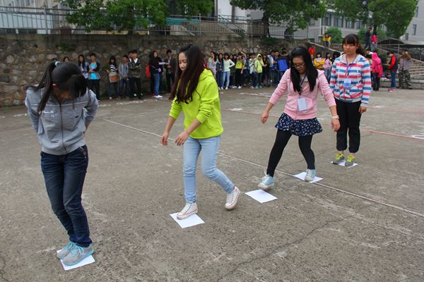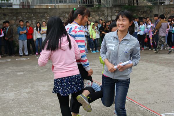 只聽見“嘭”的一聲,氣球碎屑在空中飛揚,這就是“氣球?qū)ε觥?span style="FONT-SIZE: 10.5pt; COLOR: rgb(51,51,51); FONT-FAMILY: “宋體“; mso-spacerun: “yes“">的比賽環(huán)節(jié),勇敢的女生們正相互用后背快速擠爆氣球;“向左走,快向右走,哎,直走!”結(jié)果,瓶子還是倒了。在“仙人指路”游戲中,蒙著眼睛行走的女生不時撞倒瓶子,有些笨拙卻可愛十足,不時引起觀眾們開懷大笑。