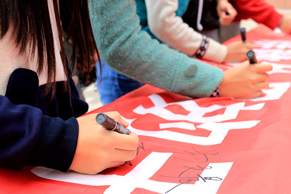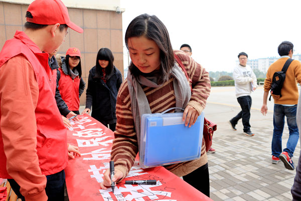 伴隨著上課鈴聲敲響,此次簽名活動接近了尾聲。橫幅上也已經(jīng)布滿同學(xué)們密密麻麻的名字。而在每個名字背后,都飽含了同學(xué)們對自己大學(xué)生活最美好的期盼。