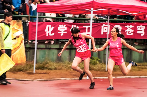 “砰!”發(fā)令槍一聲令下,第一棒選手“嗖”地沖向前方。手中緊握著留有上一棒選手余溫的接力棒,像風(fēng)一樣的奔跑,她們的目標(biāo)就是不顧一切奔向終點(diǎn)。“加油!加油!”我院觀眾席上歡呼不斷,一浪接著一浪。