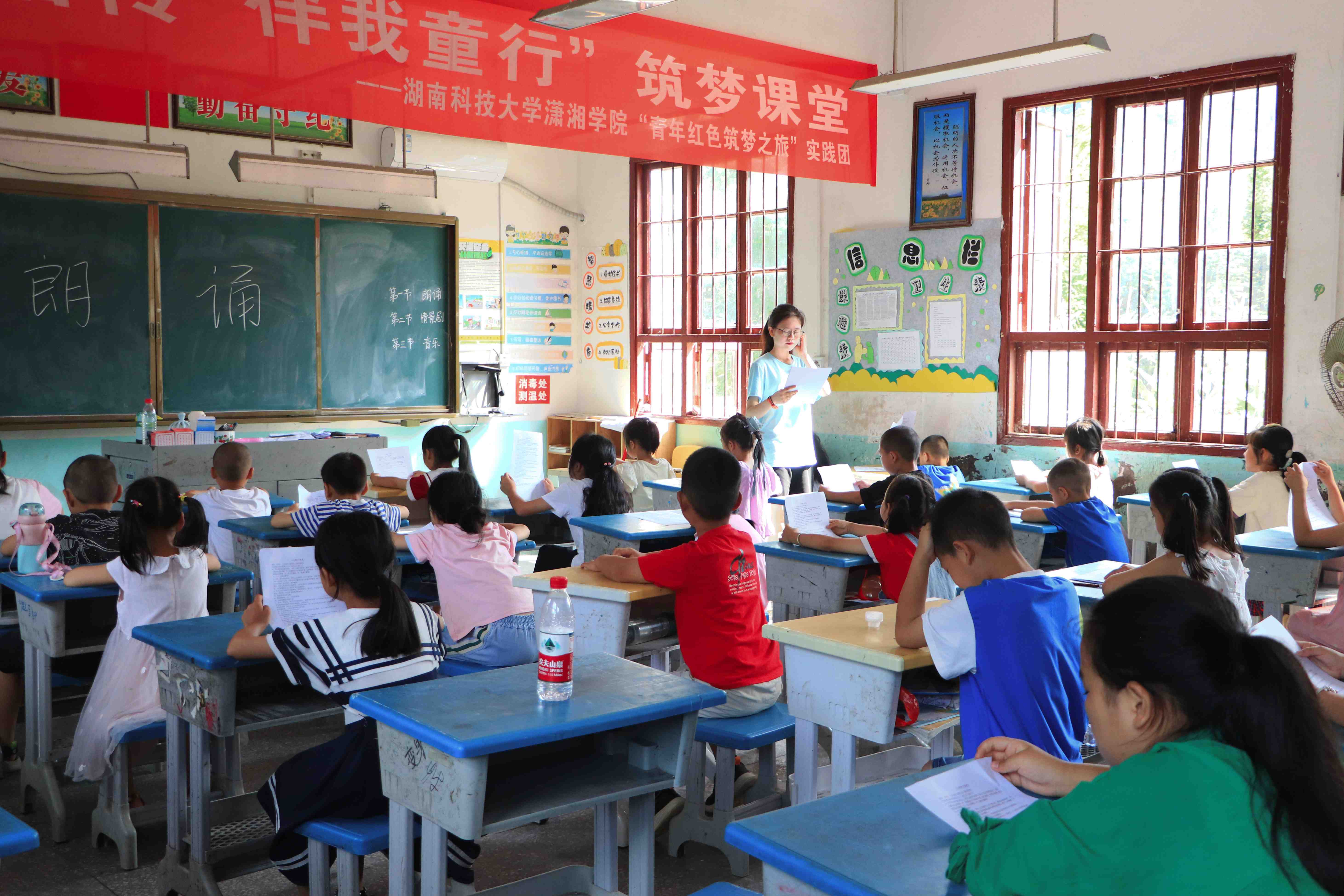 為積極響應(yīng)習(xí)近平總書記在二十大報告中提出的“加大國家通用語言文字推廣力度”的號召,提高鄉(xiāng)村青少年兒童國家通用語言文字應(yīng)用能力,7月3日上午, 我院“青年紅色筑夢之旅”實踐團(tuán)隊在通道縣木腳村完全小學(xué)為村里四十余位學(xué)生開設(shè)“推普公益課堂”。
