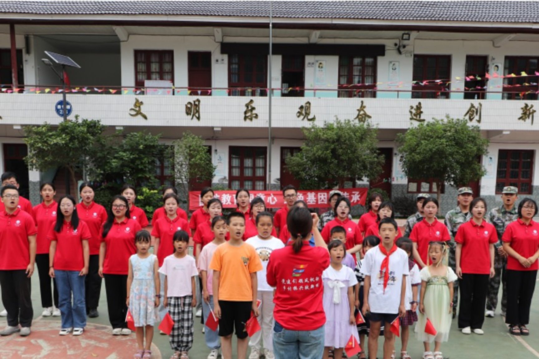 圖 實踐團(tuán)成員與“筑夢課堂”學(xué)生合唱《我和我的祖國》