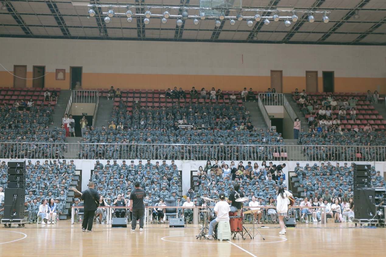 為豐富2022級新生的軍訓(xùn)生活,彰顯學(xué)院對新生的人文關(guān)懷,9月26日晚,學(xué)院新生軍訓(xùn)慰問演出于第一體育館順利舉行。學(xué)院院長禹旭才、黨委書記周光明、黨委副書記劉輝亞、2012級體育教育專業(yè)校友陳風(fēng)明出席活動,學(xué)工辦主任董孜孜、組織員張昊、各學(xué)部新生輔導(dǎo)員、全體新生以及教官參加活動。