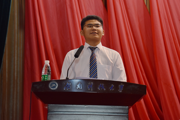 開學典禮在莊嚴的國歌聲中拉開了序幕,全體師生起立奏唱國歌,現(xiàn)場的氣氛莊重而嚴肅。隨后,優(yōu)秀教師代表和優(yōu)秀學生代表上臺發(fā)言,他們用自己的感受和經歷對新生們進行了生活和學習上的指導,教導他們樹立人生的目標,選取學習的方向,強化學習的意識,學以致用,做社會需要的人才。人文學部新生代表向夢夕表示,學習之余可以多參加學生會部門和社團活動,豐富自己的大學生活,培養(yǎng)自己的興趣愛好,做一個德智體美勞全面發(fā)展的大學生。