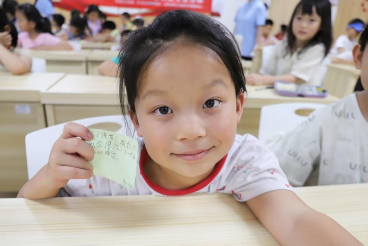 “你們辛苦了,我長大也要守護國家!”在“我想對您說”互動環(huán)節(jié),孩子們用稚嫩筆觸寫下對先輩的告白。志愿者分發(fā)的便利貼上,既有對幸福生活的珍惜,更有“成為科學家”“當兵保衛(wèi)祖國”等樸素理想。這些真摯表達,正是紅色基因代際傳承的生動注腳。